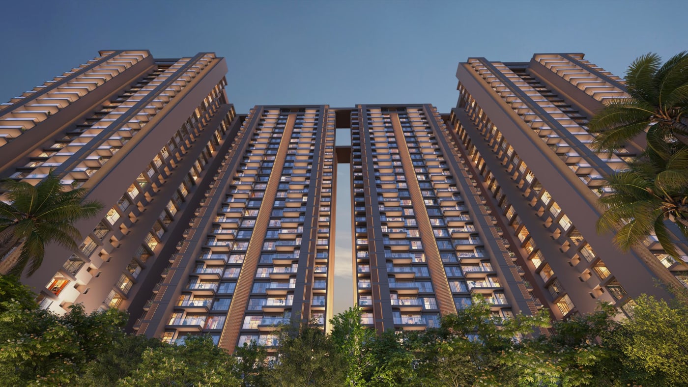 Comprising 4 majestic towers, the project offers 3 BHK flats starting at 1,170 sq.ft. and 4 BHK luxury apartments at 1,489 sq.ft., with pricing from ₹1.92 Cr onwards. Each residence is crafted with premium specifications including marble-finish vitrified tiles, smart home automation, digital door locks, designer sanitary fittings by QUEO, and large luxury windows for exceptional ventilation and views.